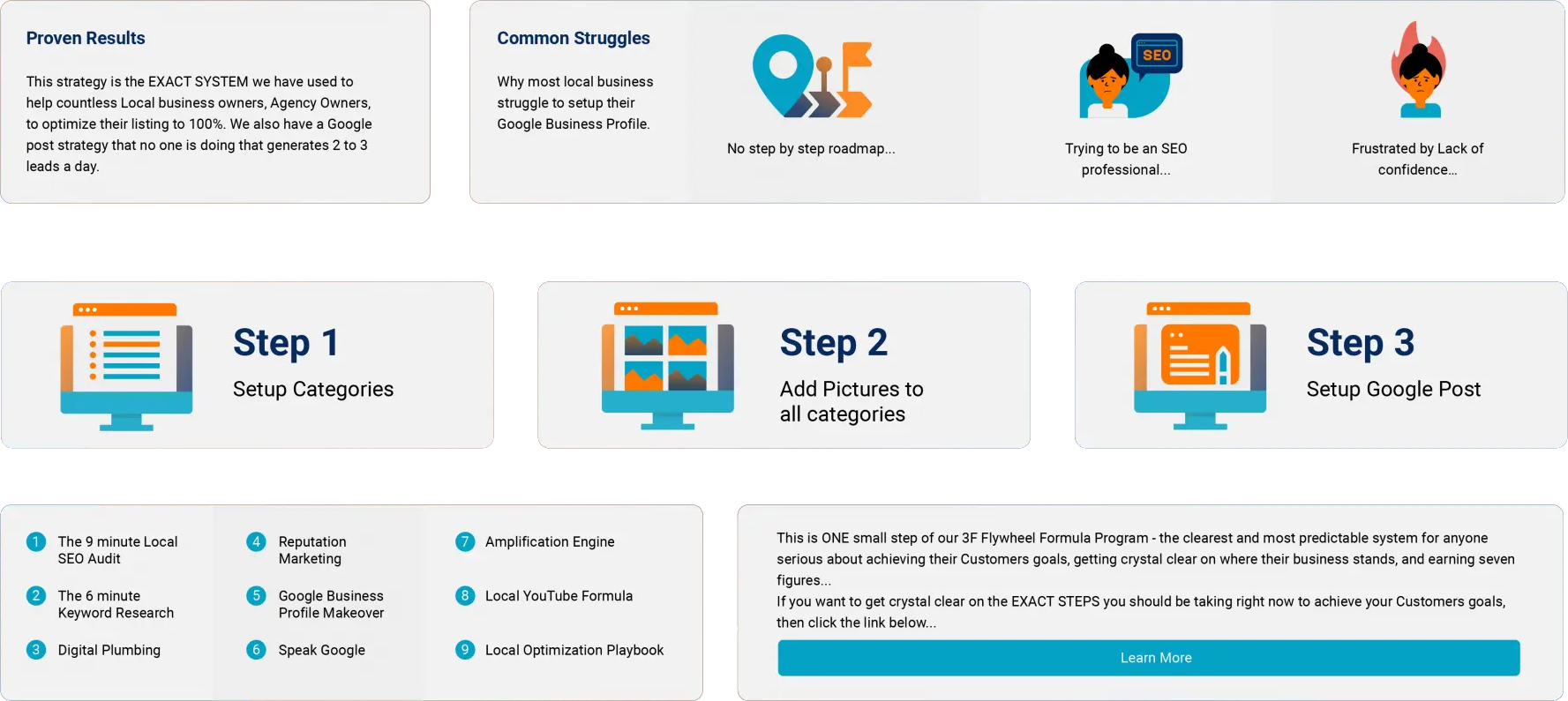 Over 5,000 local businesses have used this 9-Step system to launch their local seo campaign and generate more customers with less frustration or tech overwhelm...