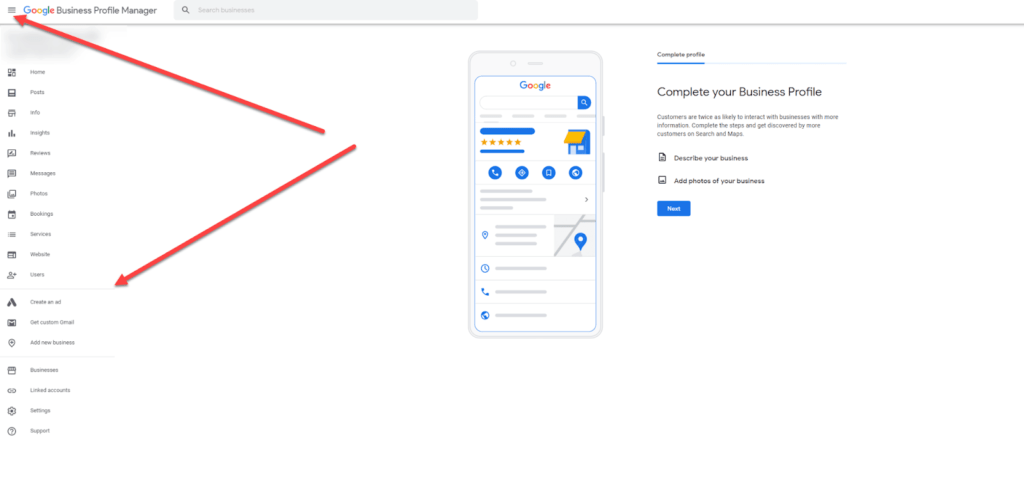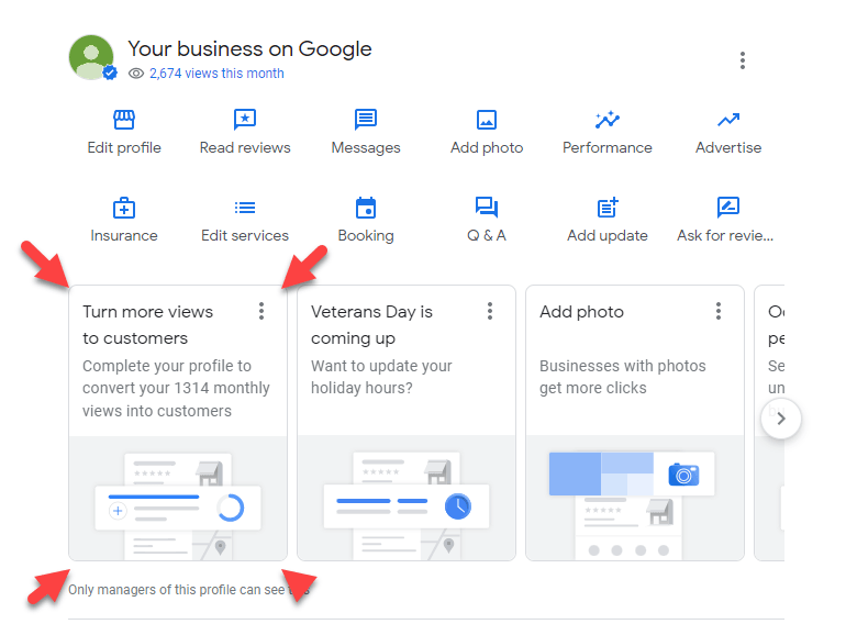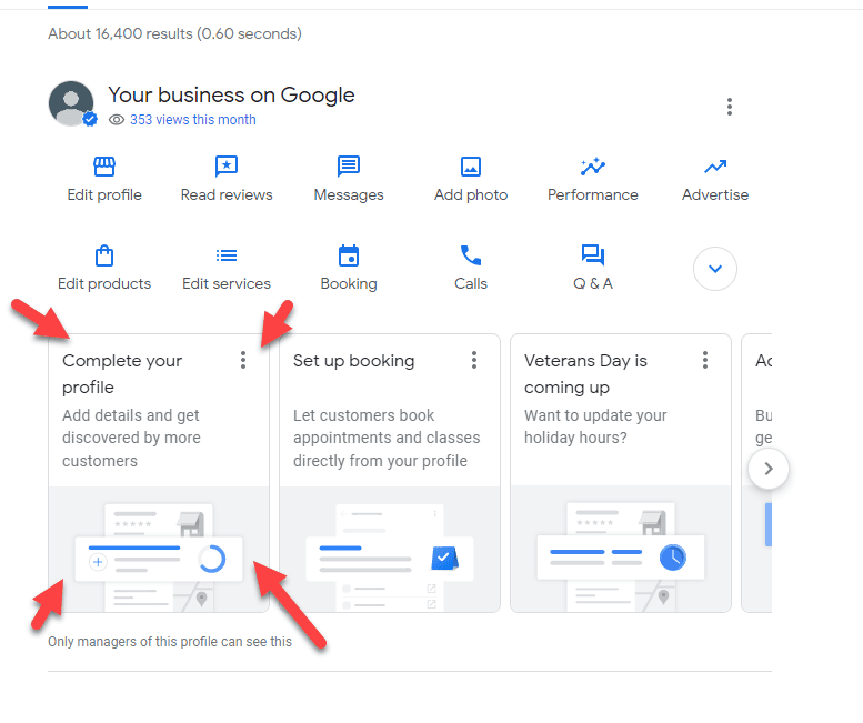 If that way doesn’t work, it’s probably because your Google Business Profile listing is new or you haven’t filled it out enough or you aren’t getting that much traffic to it.