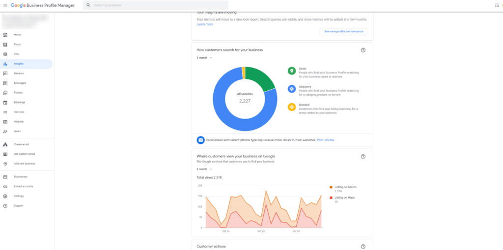 When you click on one of the sections you be back in the old Google Business Profile Manager. I clicked on insights and as you can see I am back in the old account and I can edit my profile just like in the good ole days.